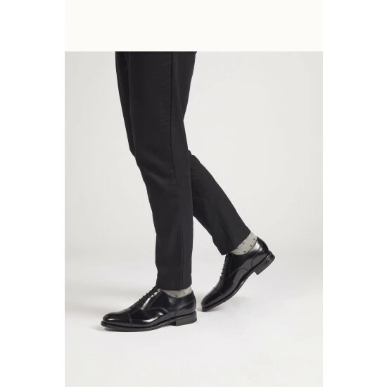 Resonating timeless class and elegance, the sleek leather Oxford shoes make a smart investment for your formal rotations, made exclusively by Loake for Jones Bootmaker Comfort Collection. Crafted in highly-polished leathers the Oxford showcases double-stitched seams with traditional toe-cap detailing and subtly characterised with the serrated trim across the tongue. Constructed with the 3625 last, one of Loake’s older lasts that presents a traditional and classic shape with generous toe-box. The perforated leather insole is fitted with a plush heel bed, cushioning the foot with lasting support, built with the Goodyear Welted method the leather Oxfords are poised on a classic rubber studded sole, encapsulating impeccable craftsmanship.