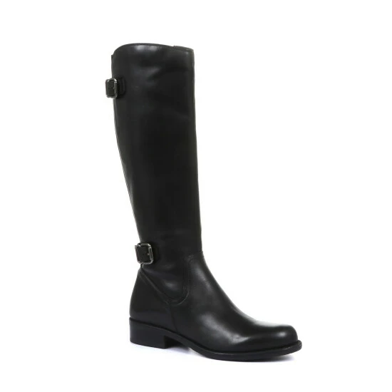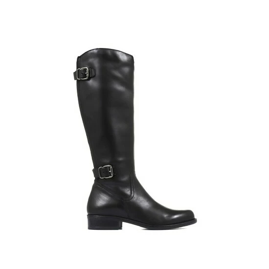 A versatile investment for their winter repertoire, the long leather boot is styled with a duo of buckle straps and fitted with two stretch inserts giving an optimised calf fit. Poised on a flat sole with full length side zip fastening, the knee boots are just as easy to wear as they are to style.