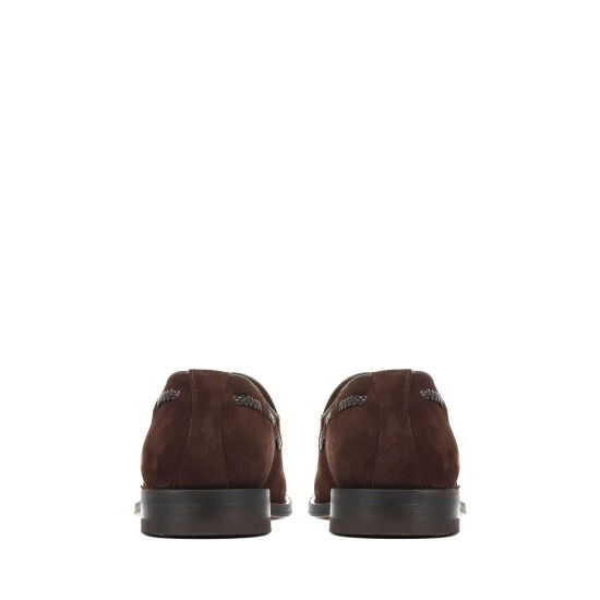 Handmade by master craftsmen in Portugal, the Carindale loafers are of investment-worthy status, made from only the finest materials. Propped on a hardy Blake Stitched leather sole, these loafers can be resoled and repaired in the years to come, meaning you’ll be slipping these on for the foreseeable. Shaped with an almond toe with piped apron seam, a braided leather cord surrounds the foot, where it is neatly finished with a duo of tassels. We can just picture them adding a slick finish to your tailored suits.