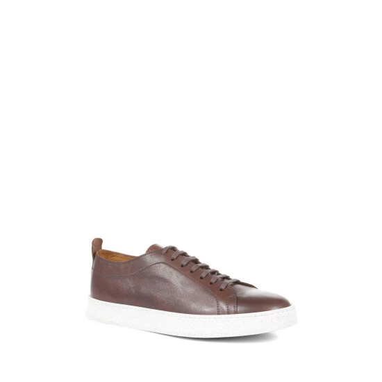 Imagined in a sleek low-cut silhouette, Jones Bootmaker southfields trainers pair just as well with casual jeans as they do with smart tailored trousers. Showcasing remarkable craftsmanship both inside and out, these lace-up trainers are constructed with a grained leather upper, smooth leather lining and soft leather footbed. A clash of smart and casual features, these lightweight trainers are based on a flexible rubber outsole.