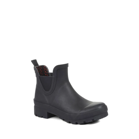 A sweet and compact finishing touch to your wet weather looks, these wellington boots are imagined in a traditional Chelsea boot silhouette. The short wellies are styled with elastic inserts which allude to the classic Chelsea boot look, as well as giving easy put-on and added flexibility. The pull-tabs further aid easy put on, and the soft textile lining gives a comfortable fit.