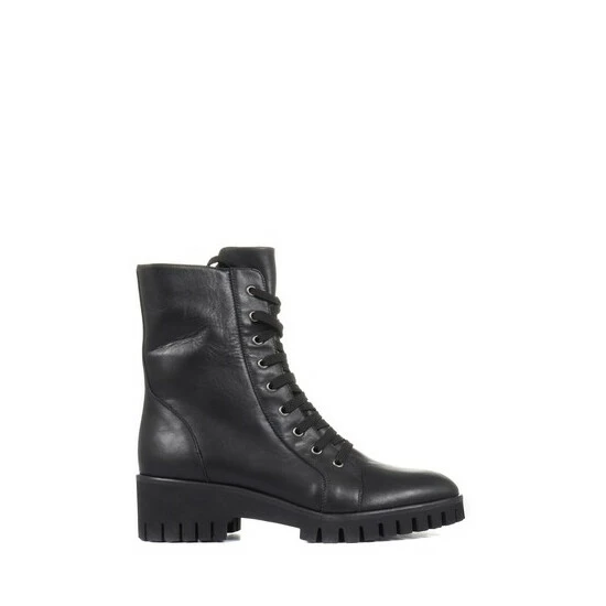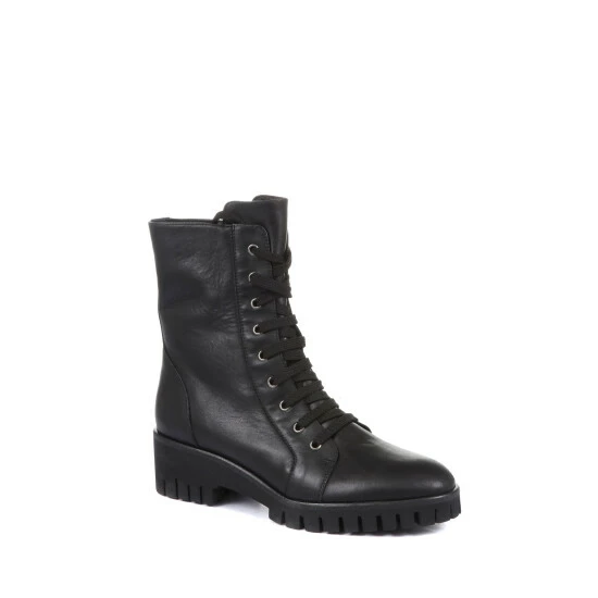 An elegant take on the unstoppable biker boot trend, these ladies ankle boots embody classic style with a touch of attitude. Styled in an extended ankle boot profile, the ladies boots lace up at the front, with an inside zip which allows for easy put on. Crafted from butter soft leather, the supple upper is contrasted against a combat inspired outsole for major stomping power.