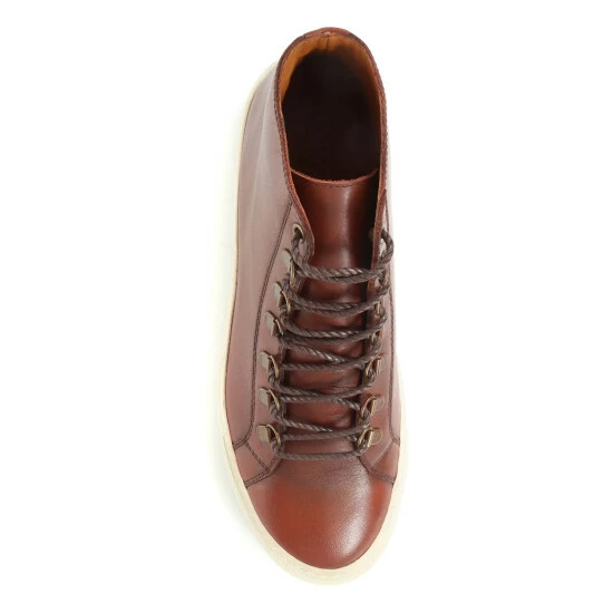 A contemporary hybrid, the Dominico trainers combine the ethos of a sneaker with the lacing of a hiker boot. Subtly tapping into the unstoppable hiker trend, the trainers take inspiration from hiker lacing, secured with metallic brackets. Crafted from beautifully smooth leather, the trainers are crafted using remarkable craftsmanship and are layered upon a contrasting outsole for a modern finish.