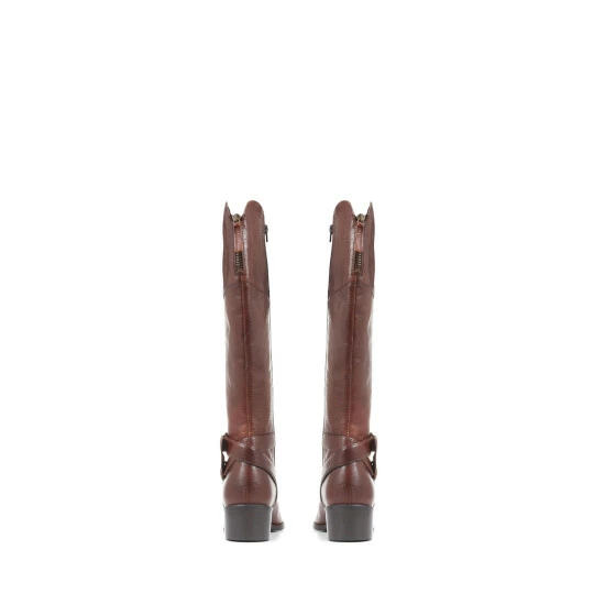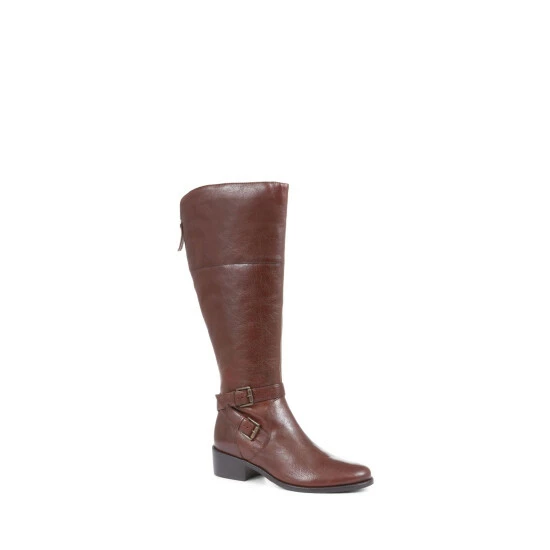 This season’s ultimate riding boot, crafted in Europe with smooth polished leather and styled with a timeless knee high silhouette teaming effortlessly with dresses and jeans alike, fitted with buckle saddle detailing and wide fitting, adjustable calf.