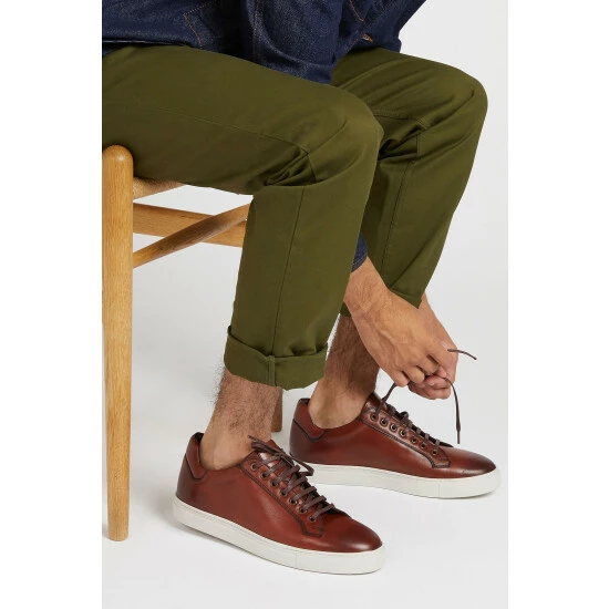 Refreshing, comfortable and extremely necessary, Simon is the lace-up sneaker that loosens up the formalities of workwear tailoring. A low-cut design made with polished leather uppers that offer a pared-back profile. Standing on an Italian-made rubber cup sole with pure leather linings and a cushioned footbed giving comfort that keeps you on your feet from dawn to dusk. As for the fit? If you are in between sizes Jones Bootmaker fully recommends to go down a size.