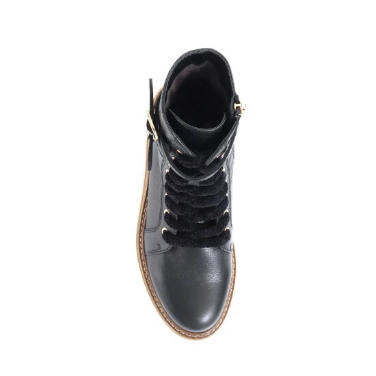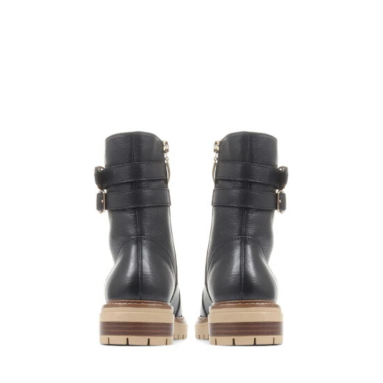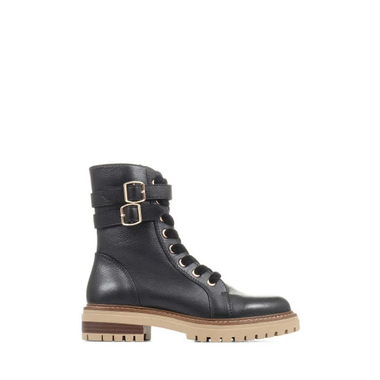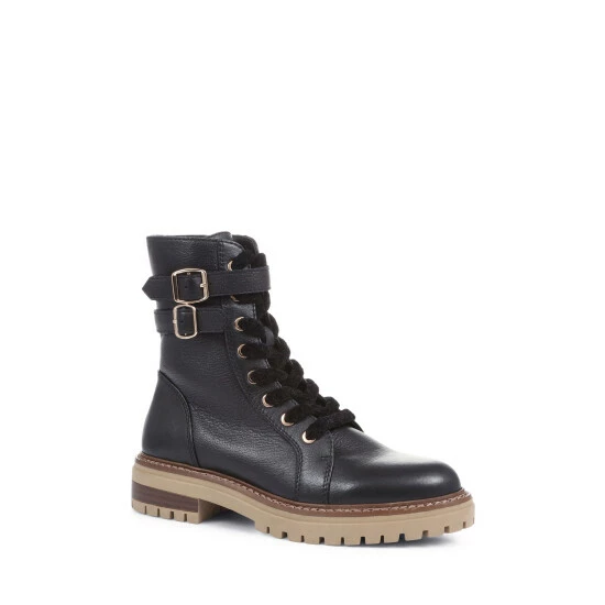 A rugged biker boot with a softer side, that’s what our Simonetta biker boots have to offer. Sculpted in grained leathers and featuring a duo of side buckles at the cuff, Simonetta is fastened courtesy of an inside zip and showcases soft, chunky chenille laces. Set upon a chunky outsole with a traditional commando tread, lean into Simonetta’s softer side by teaming them with floating dresses.